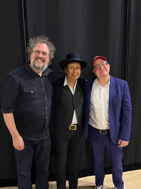 For the show, we set up three abreast, and just went down the line playing a song each. Scott Danbom, who plays regularly with Alejandro and also is a member of Centro-Matic, happened to be in town and joined us for the show, playing keys and fiddle. So much of it was off the cuff, but it worked beautifully. Of course, Alejandro had amazing stories to share, including one about his band The Nuns opening the last Sex Pistols show, and later being at the Chelsea Hotel with Sid Vicious around the time the shit went down. Just a magic night. I came off stage beaming and even got to visit with a very cool audience member after the show - artistic legend Terry Allen.